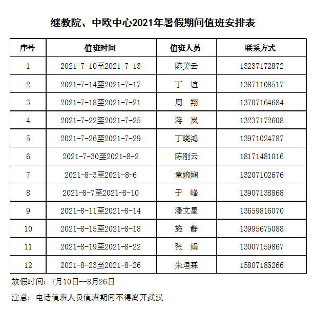 继教学院、中欧中心暑假期间值班安排