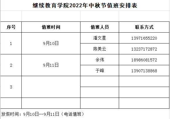 tyc122cc太阳成集团2022年中秋节值班安排表