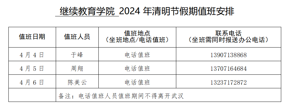 tyc122cc太阳成集团2024年清明节假期值班安排