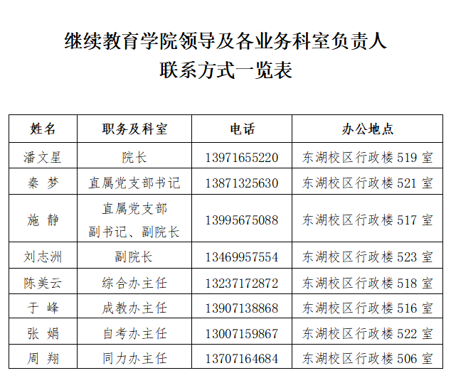 tyc122cc太阳成集团领导及各业务科室负责人联系方式一览表