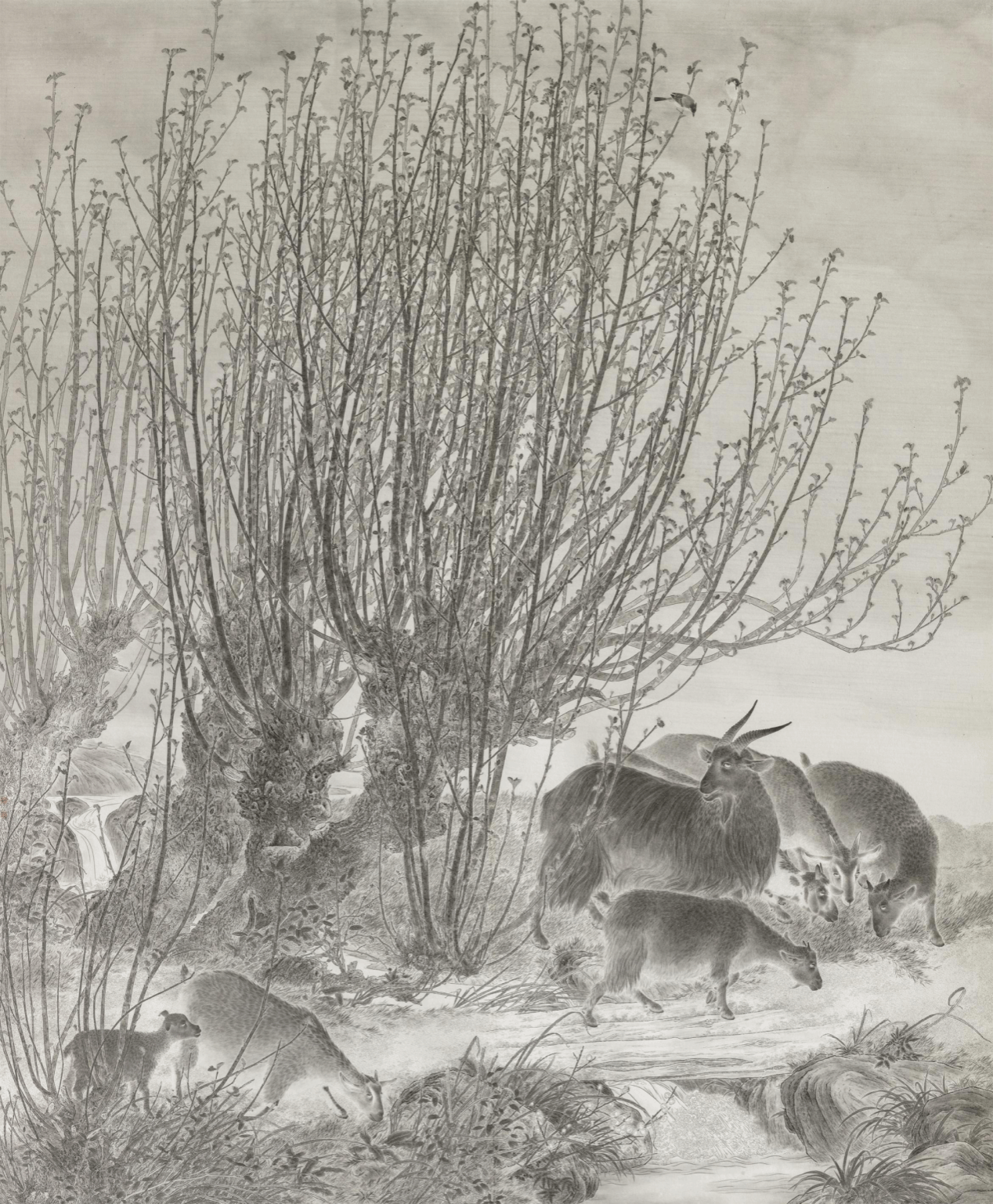 (疏林雀影) 尺寸210厘米×160厘米
