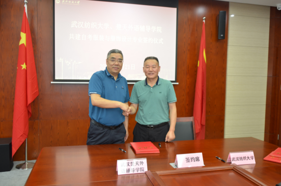 6月21日,太阳成集团tyc122ccvip与武汉楚天外语辅导学院共建高等教育自学考试服装与服饰设计专业签约仪式在南湖校区举行,相关工作同时启动。
