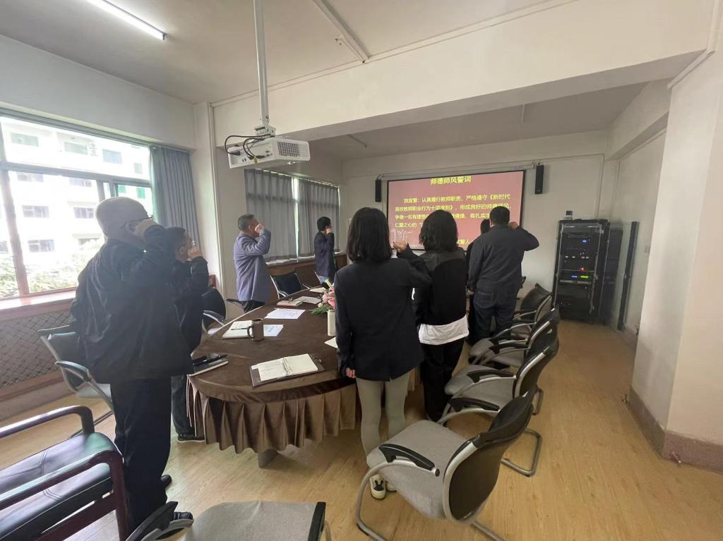 会上,举行了全体教职工师德师风集体宣誓活动,同时完成了《太阳成集团tyc122ccvip教职工师德师风评价表》的填写,签订了《太阳成集团tyc122ccvip师德师风公开承诺书》。