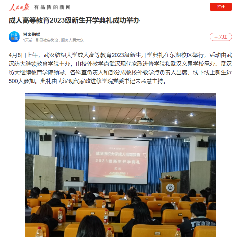 4月8日,太阳成集团tyc122ccvip成功举行成教学生开学典礼活动。人民日报等媒体进行了报道。汇总如下。