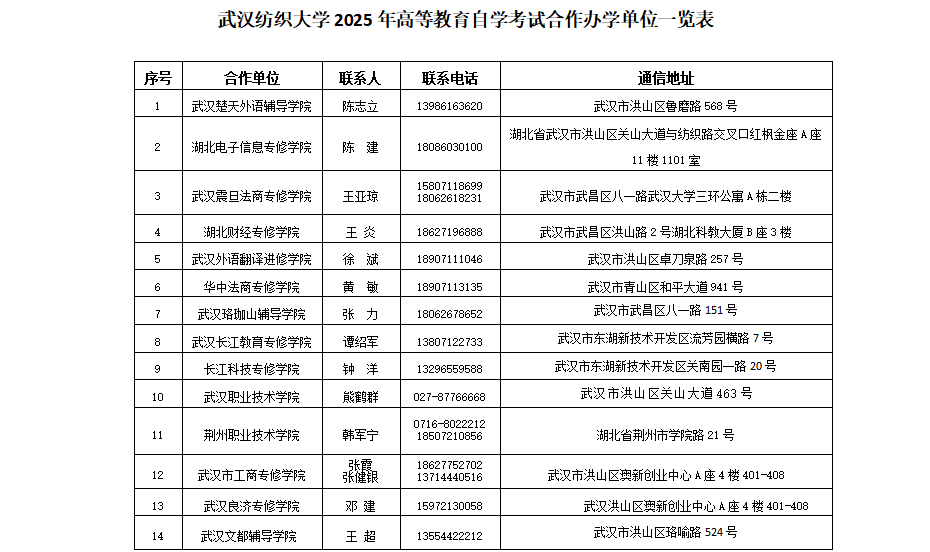 太阳成集团tyc122ccvip2025年高等教育自学考试合作办学单位一览表
