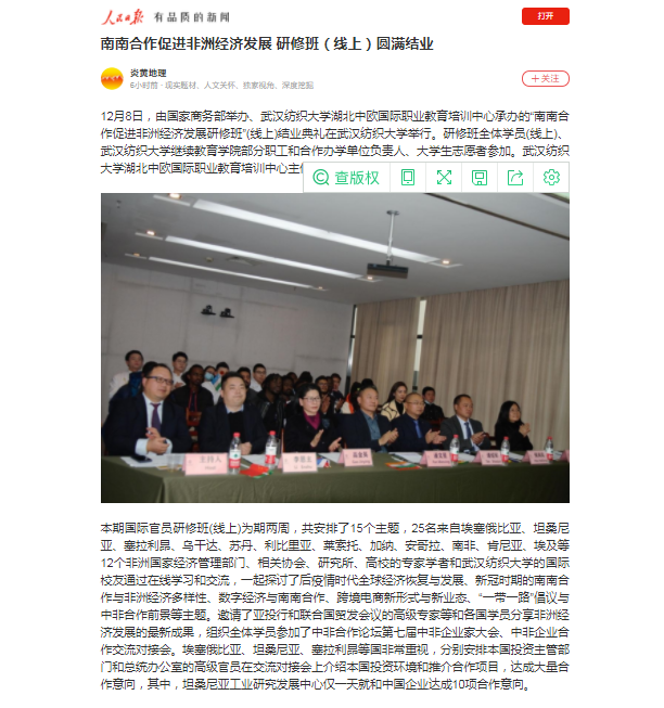 【武汉教育电视台】南南合作促进非洲经济发展研修班(线上)圆满结业