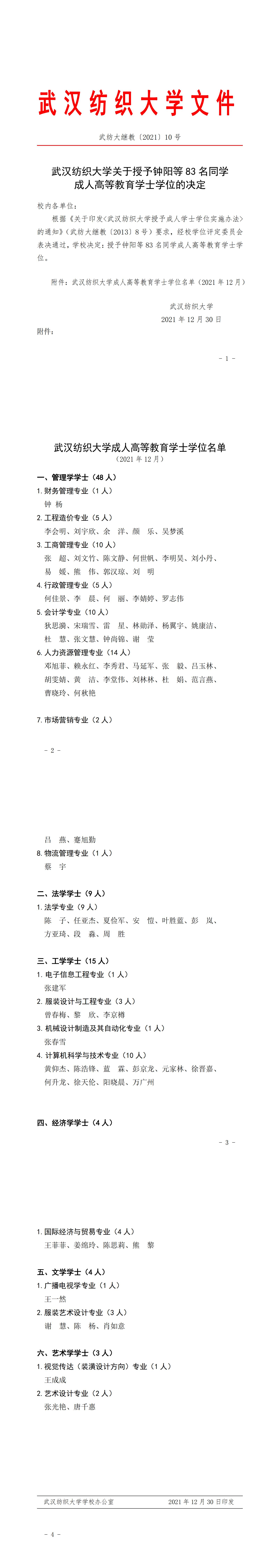 太阳成集团tyc122ccvip关于授予钟阳等83名同学成人高等教育学士学位的决定