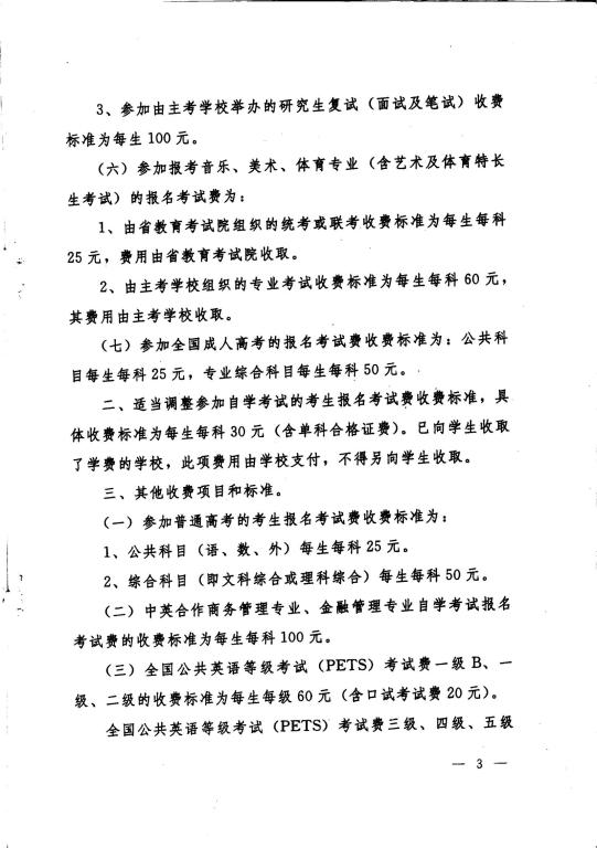省物价局省财政厅关于规范教育招生考试收费有关问题的通知