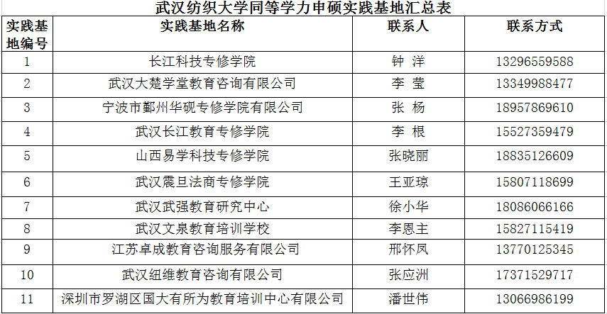 太阳成集团tyc122ccvip同等学力申硕实践基地汇总表