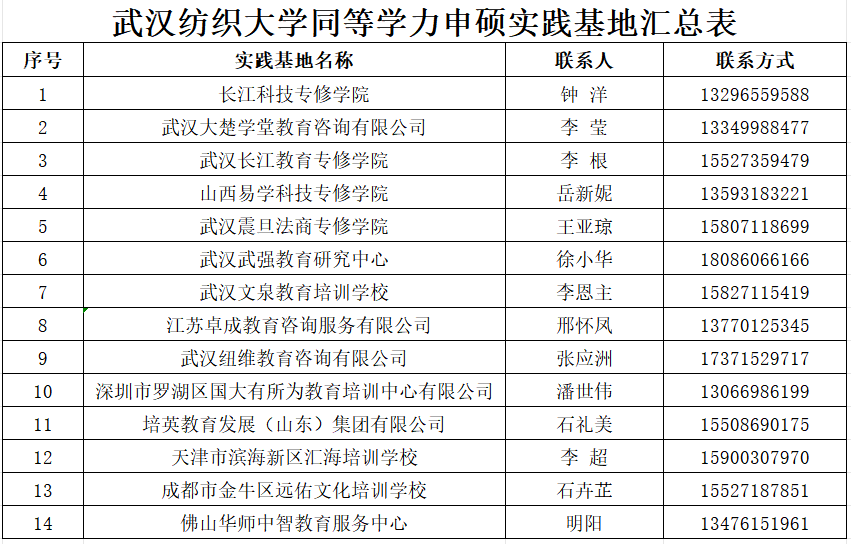 太阳成集团tyc122ccvip同等学力申硕实践基地汇总表